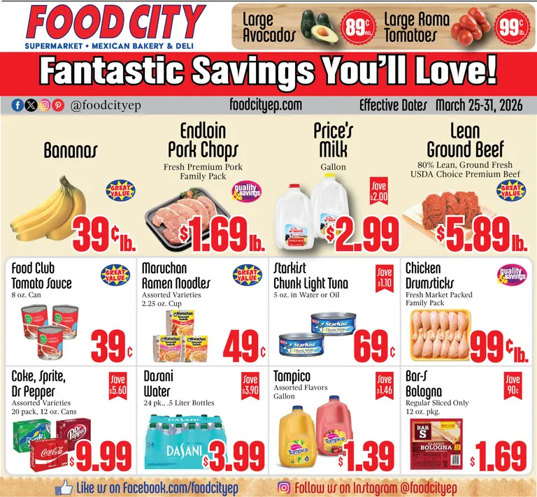 You’re viewing the Food City weekly ad, valid from 03/25/2026 to 03/31/2026. Visit our website regularly to stay up to date with the latest deals and promotions from your favorite stores.