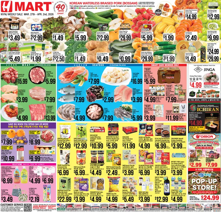 You’re viewing the H Mart weekly ad, valid from 03/27/2026 to 04/02/2026. Visit our website regularly to stay up to date with the latest deals and promotions from your favorite stores.