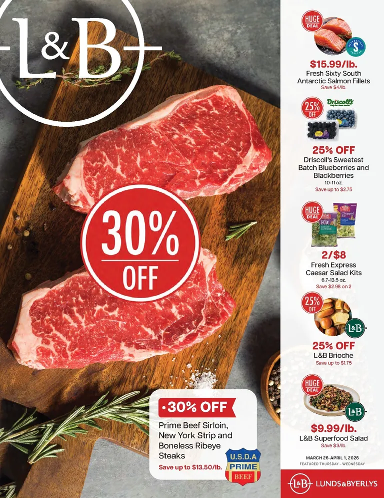 You’re viewing the Lunds and Byerlys weekly ad, valid from 03/26/2026 to 04/01/2026. Visit our website regularly to stay up to date with the latest deals and promotions from your favorite stores.