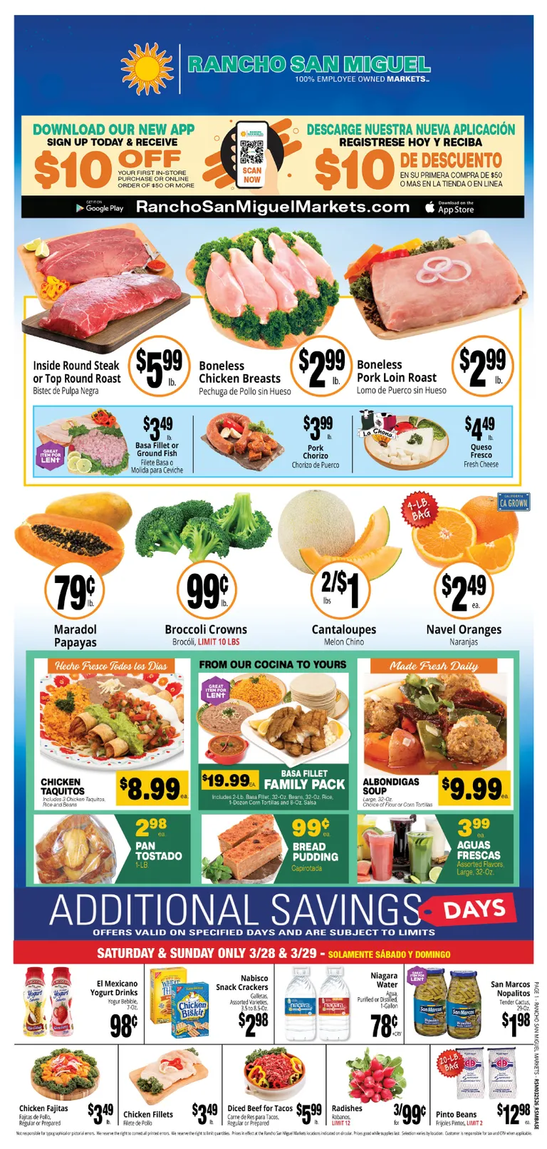 You’re viewing the Rancho San Miguel Markets weekly ad, valid from 03/25/2026 to 03/31/2026. Visit our website regularly to stay up to date with the latest deals and promotions from your favorite stores.