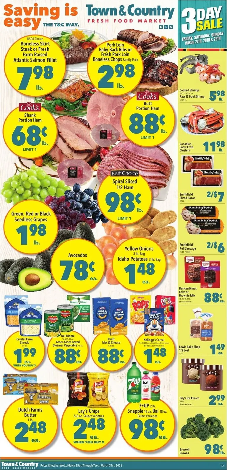 You’re viewing the Town & Country Markets weekly ad, valid from 03/25/2026 to 03/31/2026. Visit our website regularly to stay up to date with the latest deals and promotions from your favorite stores.