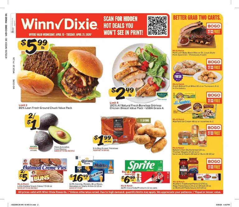 You’re viewing the Winn-Dixie weekly ad, valid from 04/15/2026 to 04/21/2026. Visit our website regularly to stay up to date with the latest deals and promotions from your favorite stores.